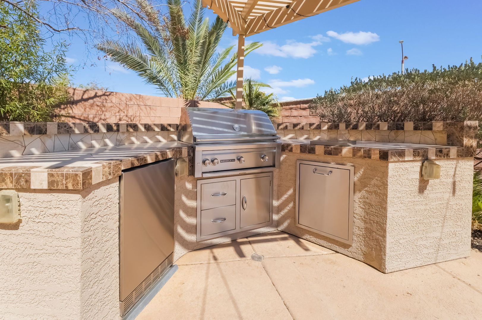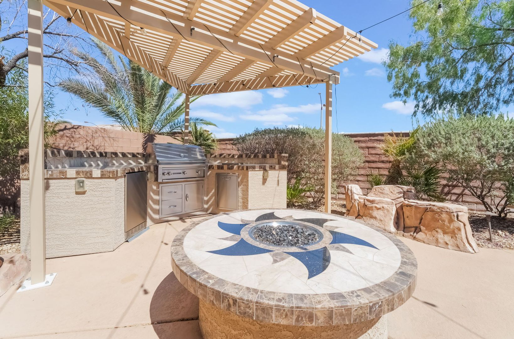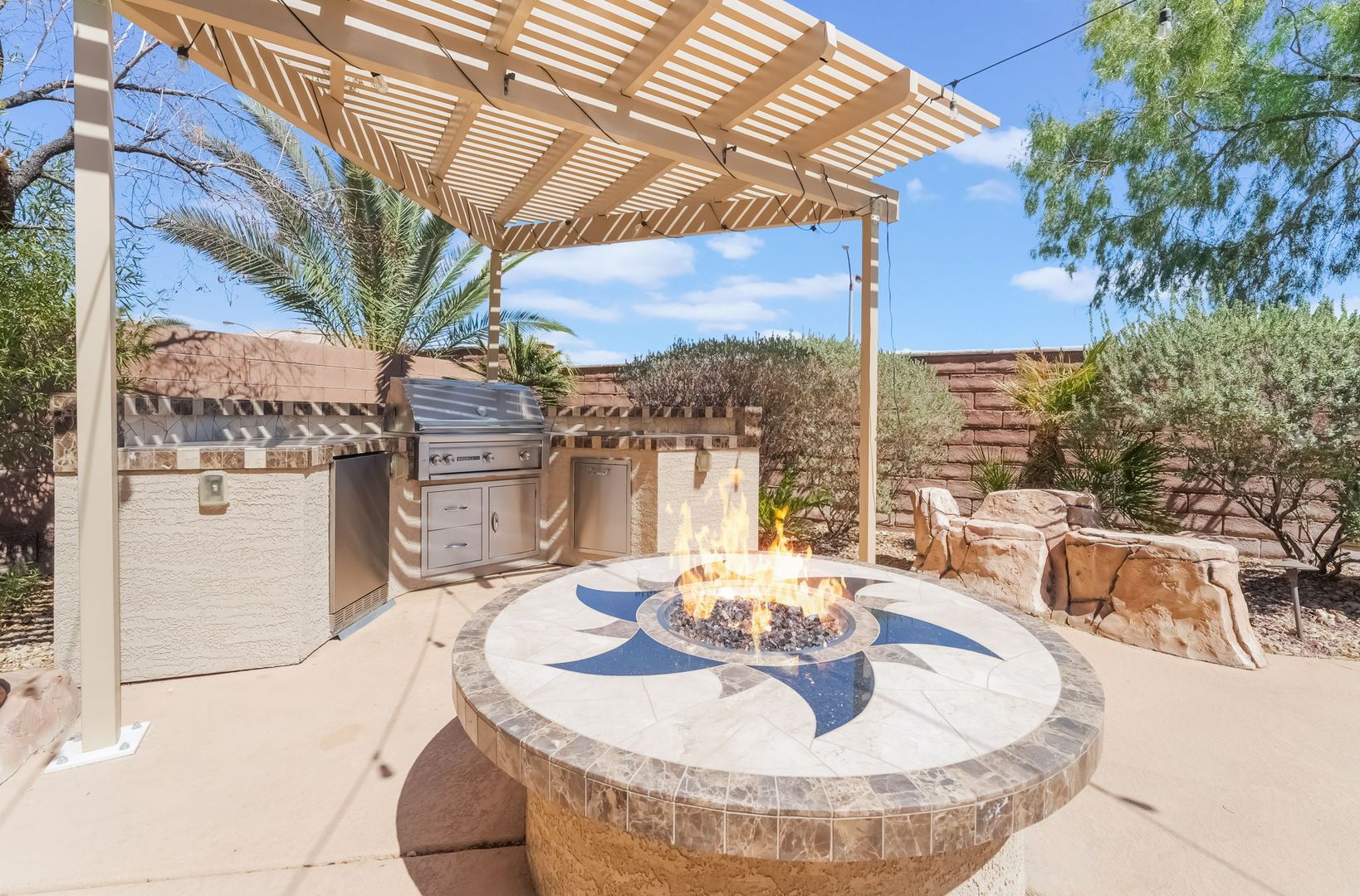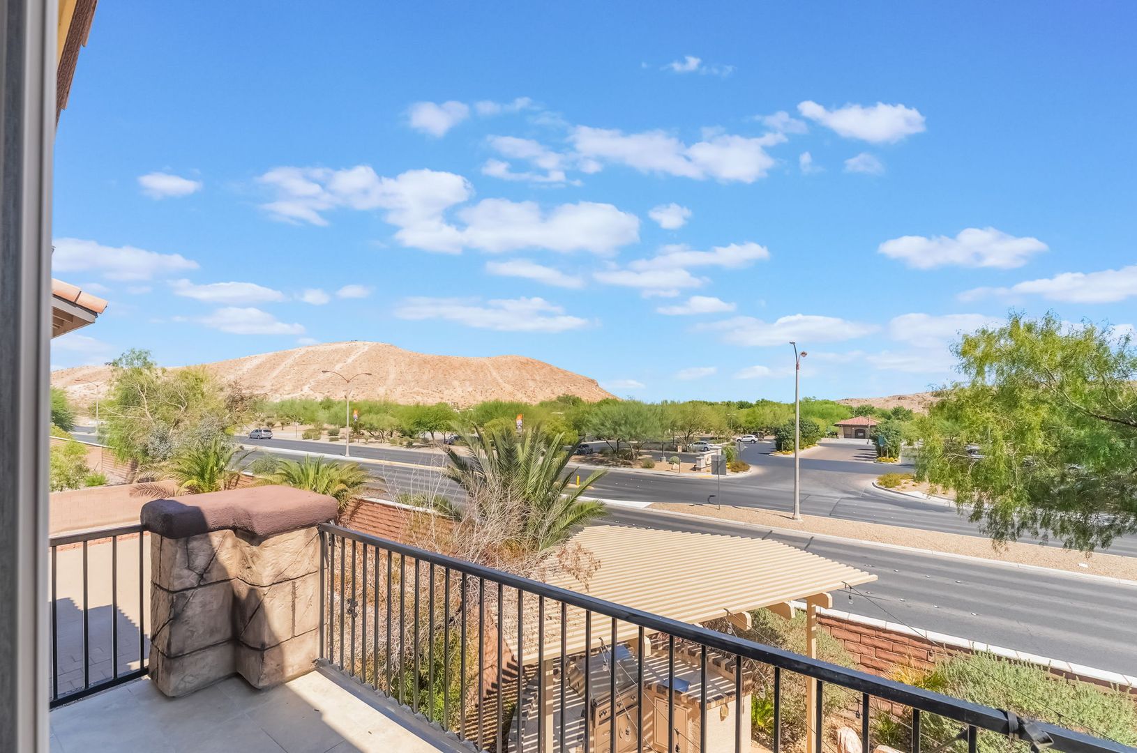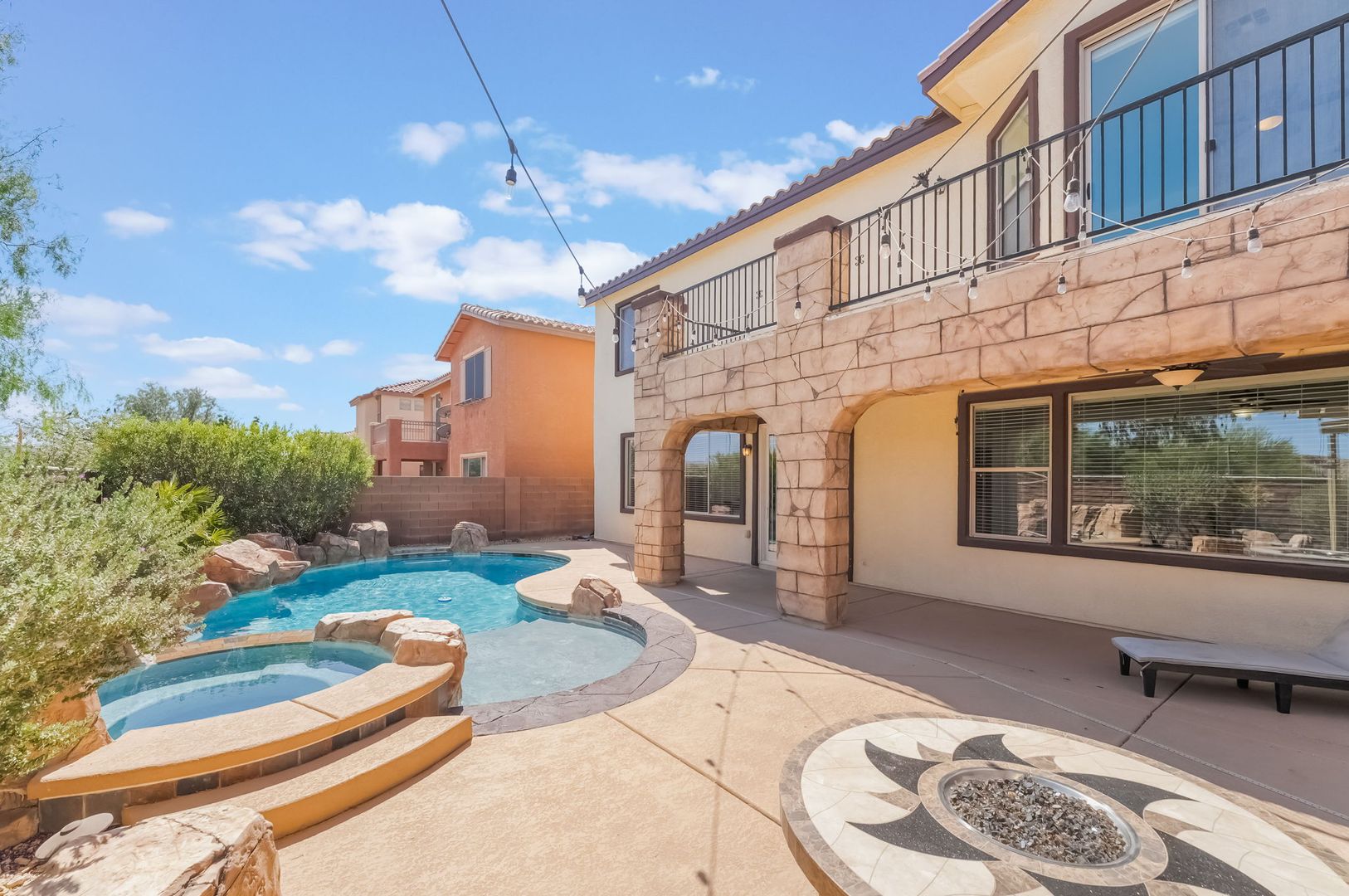 Stunning home with a resort-style pool and spa, located in the exclusive gated community of Marble Canyon in Mountains Edge. Just across the street behind this magnificent home sits Exploration Peak Park. Breathtaking views from the primary bedroom balcony. Mountains Edge Regional Park is minutes away. This impressive residence features a 3-car garage, five spacious bedrooms, & four full bathrooms, with one bedroom & bath conveniently located on the main floor. Gourmet kitchen, complete with a large island, granite countertops, Butler’s pantry, & upgraded cabinets, is perfect for culinary enthusiasts. Enjoy high ceilings that create an airy feel throughout the home, along with a generous loft, family room, dining area, & versatile den/office. Outside, entertain friends with a built-in BBQ or cozy up around the fire pit. The laundry room includes a sink and ample cabinetry. Ideally situated near shopping, dining, schools, and easy access to the airport and the Las Vegas Strip.