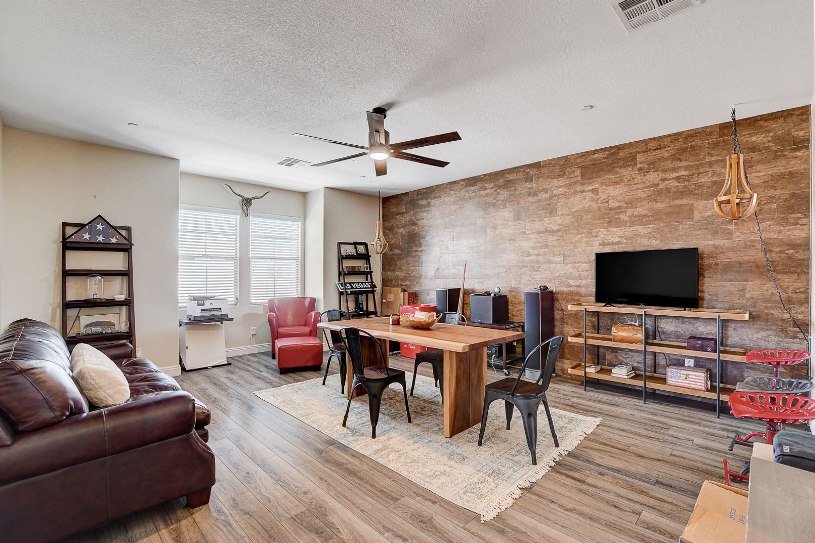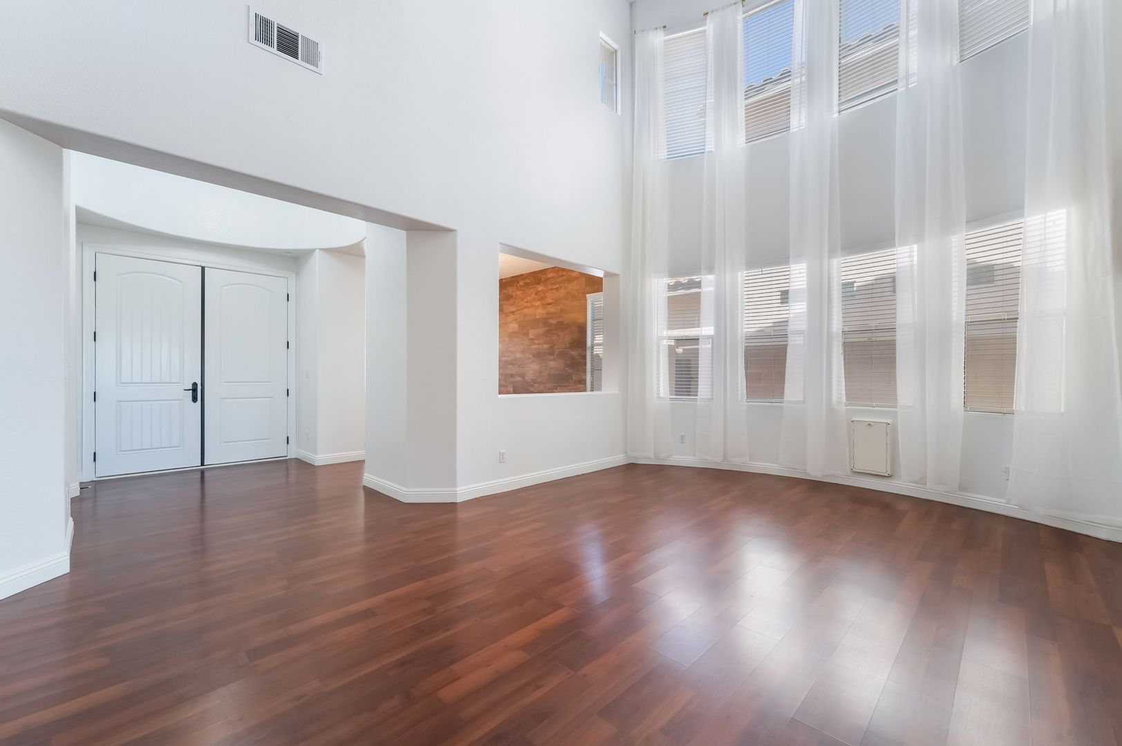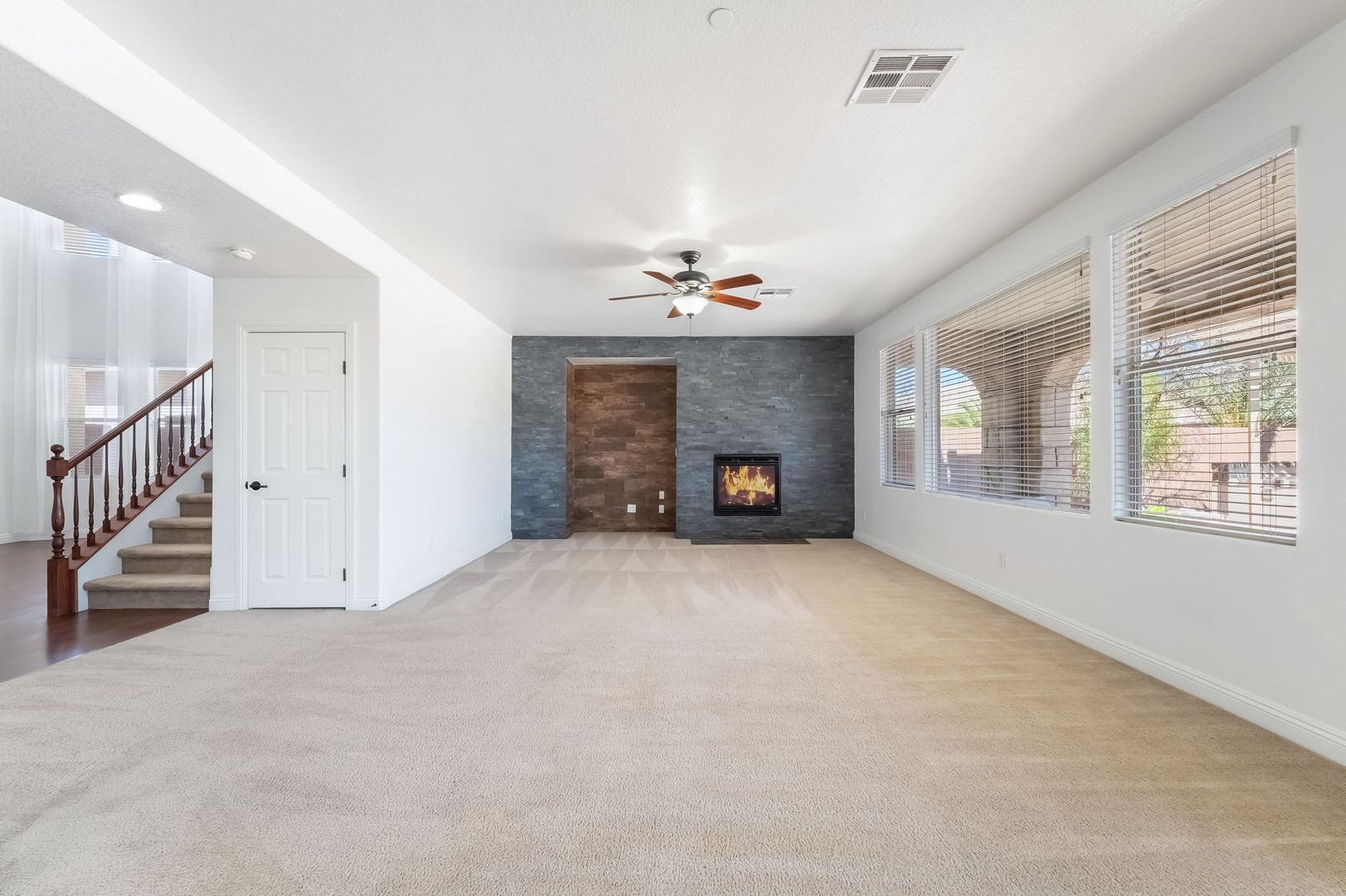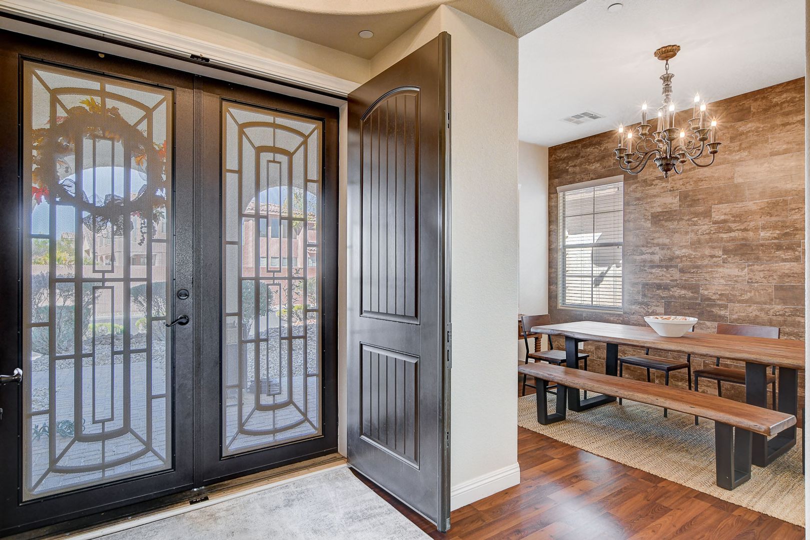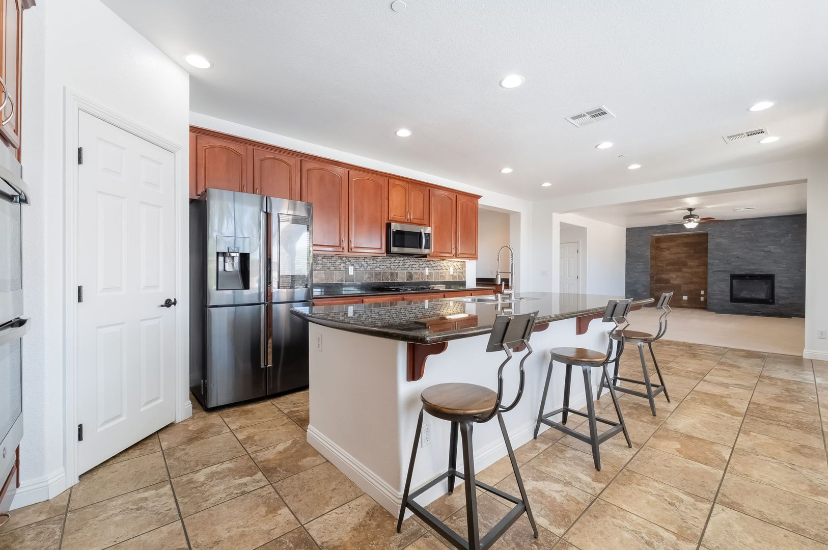 Stunning home with a resort-style pool and spa, located in the exclusive gated community of Marble Canyon in Mountains Edge. Just across the street behind this magnificent home sits Exploration Peak Park. Breathtaking views from the primary bedroom balcony. Mountains Edge Regional Park is minutes away. This impressive residence features a 3-car garage, five spacious bedrooms, & four full bathrooms, with one bedroom & bath conveniently located on the main floor. Gourmet kitchen, complete with a large island, granite countertops, Butler’s pantry, & upgraded cabinets, is perfect for culinary enthusiasts. Enjoy high ceilings that create an airy feel throughout the home, along with a generous loft, family room, dining area, & versatile den/office. Outside, entertain friends with a built-in BBQ or cozy up around the fire pit. The laundry room includes a sink and ample cabinetry. Ideally situated near shopping, dining, schools, and easy access to the airport and the Las Vegas Strip.