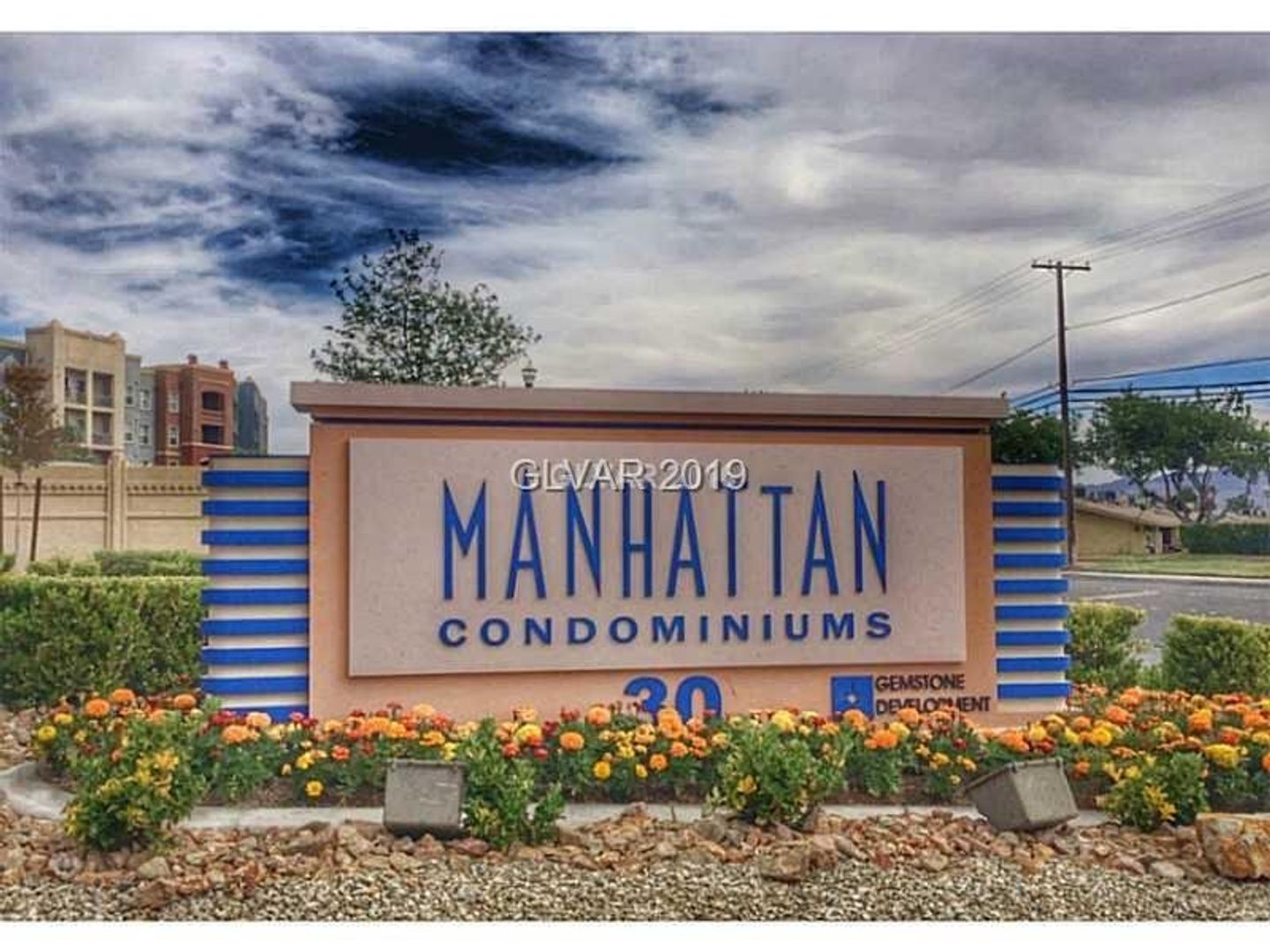 Manhattan Luxury Mid rise Located off South Strip. Unique community design with exceptional community amenities. Popular open floor plan has extra roomy primary suite. New laminate flooring. 3rd floor unit overlooks central park. Community Pool/Spa, Fitness Center. Corner unit. Guard gated community.