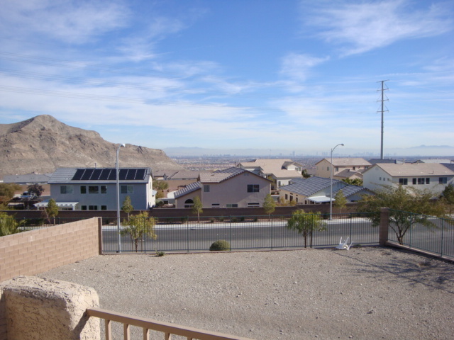 Beautiful three bedroom home with loft, open floor plan, all appliances and a million dollar view of the Las Vegas Valley. Two master bedrooms; one up and one down. 3 car garage with direct access. Oversized backyard.